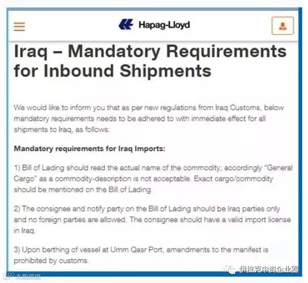 船公司之前hapago - lloyd宣布,根据伊拉克海关的新规定,