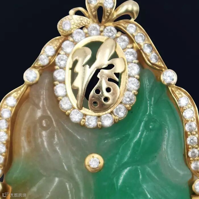 此件作品:重26.3g,原料來自越南緬甸材質典型A貨,紋飾鸞鳳和鳴畫工及其精細,鸞與鳳紋栩栩如生,雕工精細、比例勻稱、線條流暢、拋光均勻潔淨,玉質上佳,翠色獨特自然,絕無僅有,周邊鑲嵌工藝由K金與52顆鋯鑽組成,寓意:特指夫妻恩愛、家庭和睦、子孫繁盛、家業興旺。是一件高檔翡翠玉雕的收藏品。乃送禮佳品。亦為本公司重點推薦藏品之一。