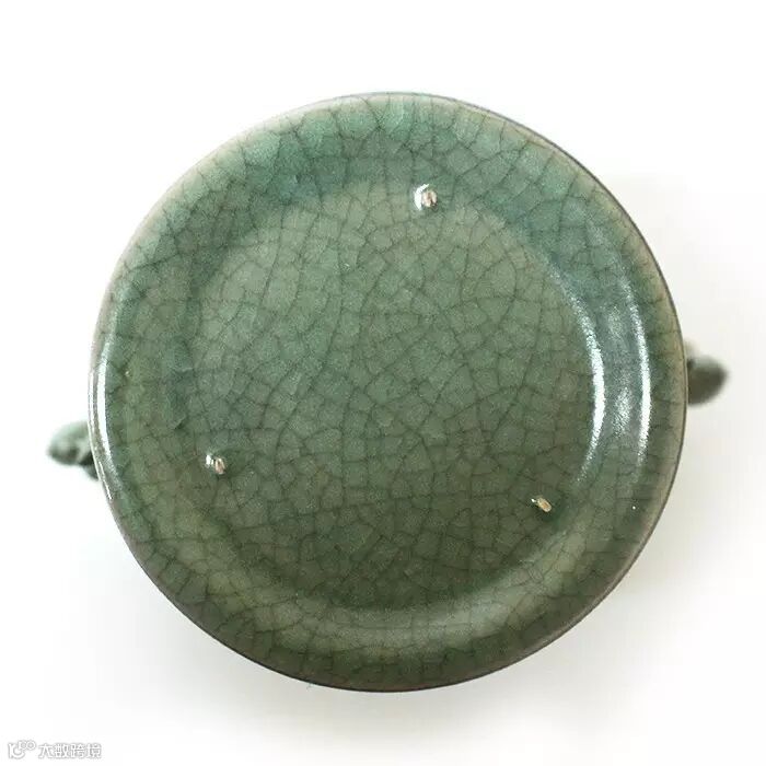 此器:上通體施以天青釉,釉中細小沙眼蟹爪紋,釉水滋潤自然,釉面色澤溫潤,胎釉結合緊密,底有支釘燒造痕迹,支釘痕明顯,露胎處呈香灰色,多呈斜裂開片,深淺相互交織疊錯,像是銀光閃閃的片片魚鱗,或呈蟬翼紋狀,給人以排列有序的層次感。汝窑是為五大名窑,其產品品質之精,少見罕有,此組器大氣恢弘,釉色純正,是少有的汝窑珍品。