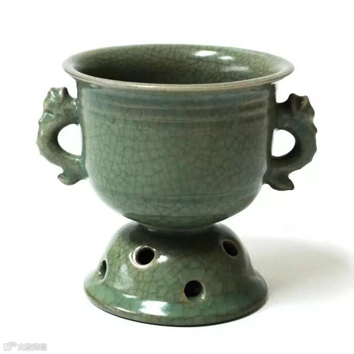 汝釉雙耳帶座尊