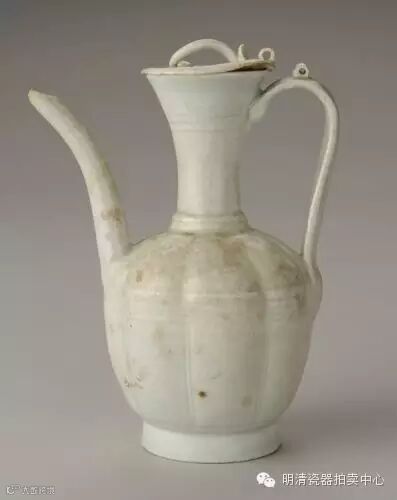 南宋青白釉带盖执壶(图12) 口径4.6厘米、足径5.2厘米、高15.2厘米。福建省博物院藏。这件执壶脖颈细长,喇叭口,提梁钮盖,长流长柄,瓜棱形腹部浑圆饱满,圈足略外撇,青白釉色温润含蓄,整体造型像一位穿着素绢,翩翩起舞的少女。青白釉执壶在宋代非常流行,不仅因为其制作工艺精湛,更因为它温润如玉的质感符合宋人审美“君子如玉”的理念。