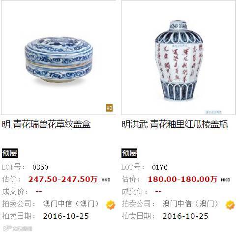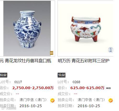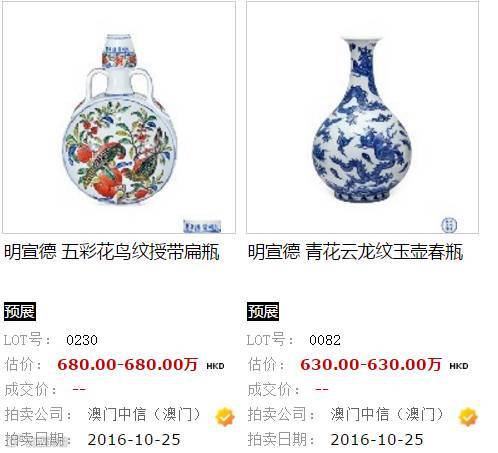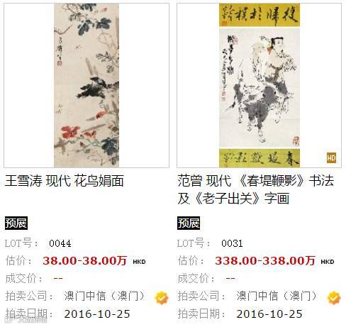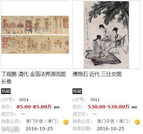 以下是雅昌網預展部分拍品