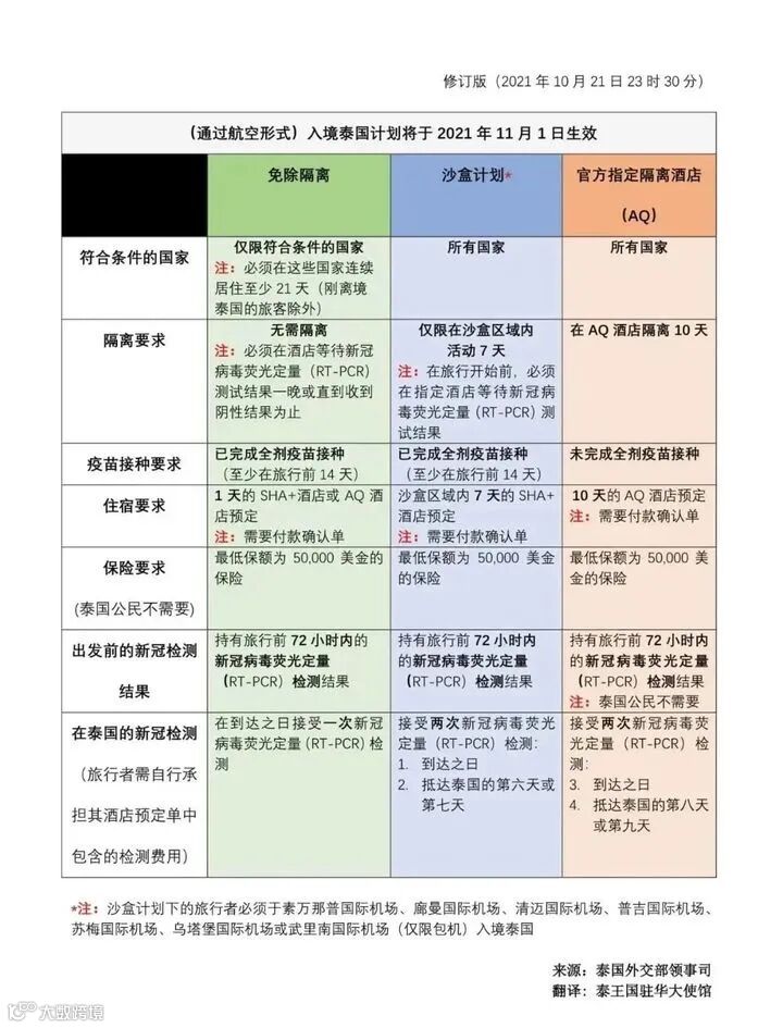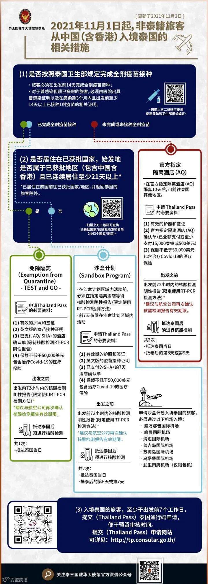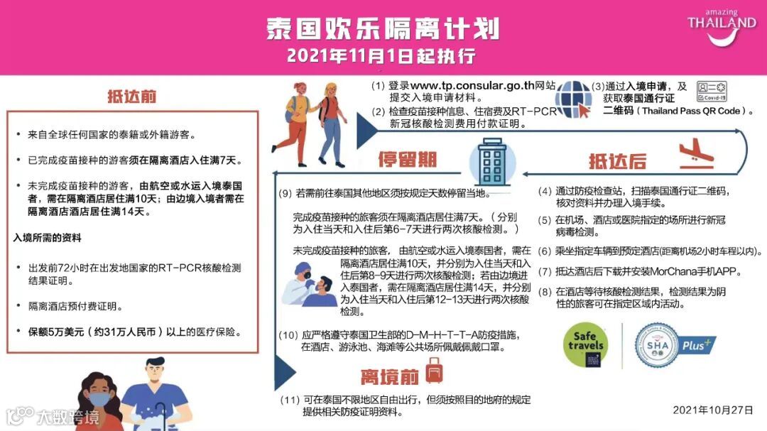 (2)通过“沙盒计划”入境泰国的所有18岁以上的旅客,为入境泰国免除隔离,在出发前至少14天,要出具已完成全剂疫苗接种证明相关资料