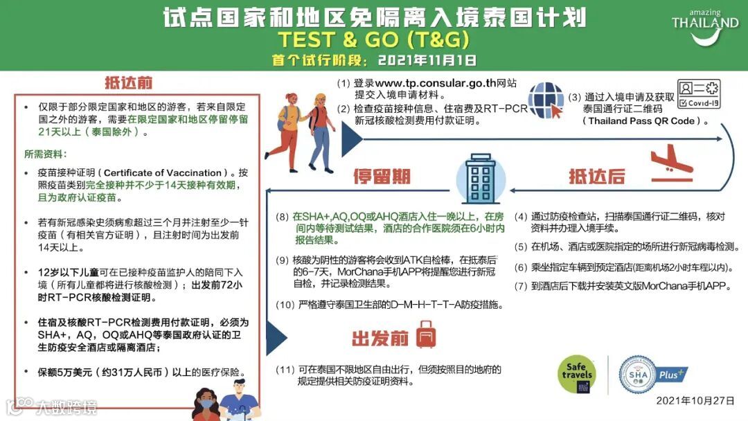 答:(1)所有12岁以上的旅客,为入境泰国免除隔离,在出发前至少14天,要出具已完成全剂疫苗接种证明相关资料。