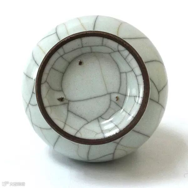 2、釉色有天青、粉青、蝦青、月白、油灰、鱔魚黃等釉色。絕大部分器物,胎釉與汝瓷有極其相似之處,官窑的釉色更趨向追求玉色。