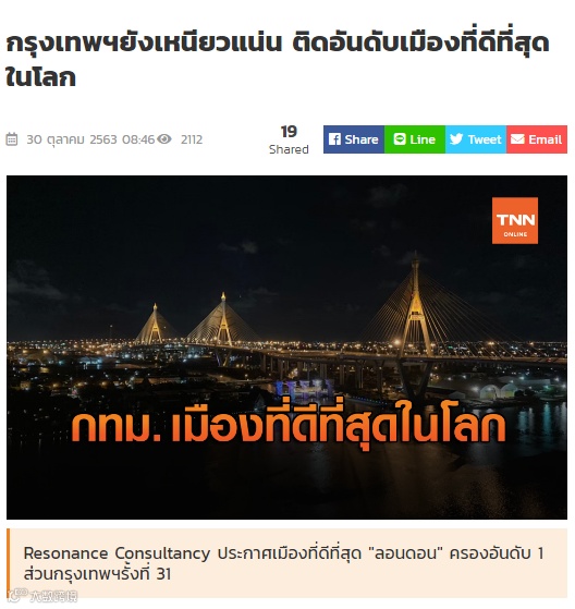作为领导业界的旅游、地产及经济发展顾问,Resonance的最佳城市排名就全球100万或者以上的大都会,量化及基准化相对的地方品质、声誉及竞争特点。该项“全球最佳城市”排名榜单一直以来都凭借自身的权威性,是全球投资者们最重要的参照之一。本身曼谷就一直是长期霸榜“全球最宜居城市排名”的地方,再加上此次Resonance Consultancy的权威认证,2021年预计在投资圈将掀起一股曼谷炒房热!