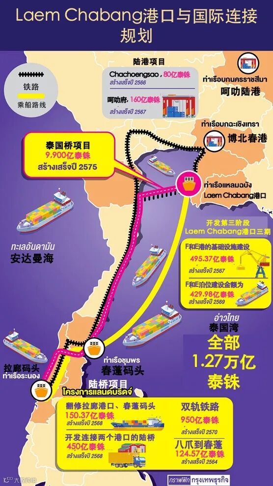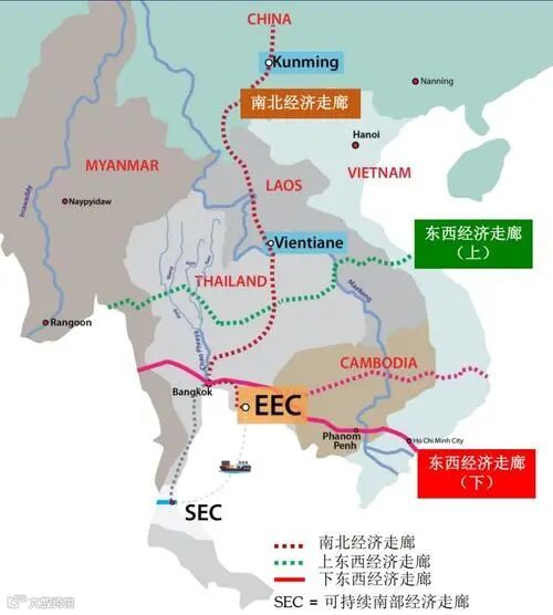 东部经济走廊加强以泰国为区域中心的战略,包括将南部经济走廊(SEC)和东部经济走廊(EEC)连接起来,以连接泰国湾和安达曼之间的运输。