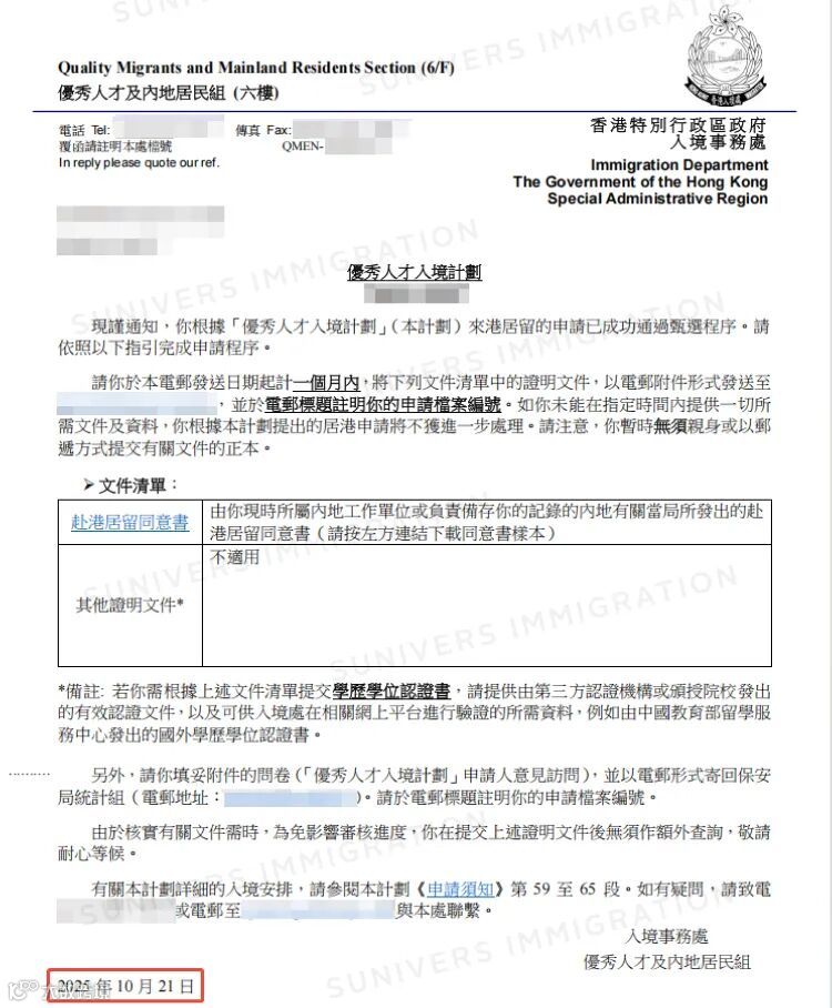 同样在2025年10月21日,C女士成功获得优才正式获批函,全程仅用时5个月!
