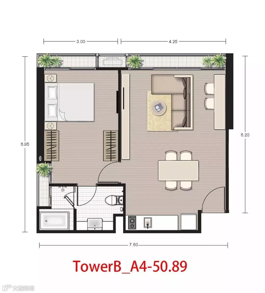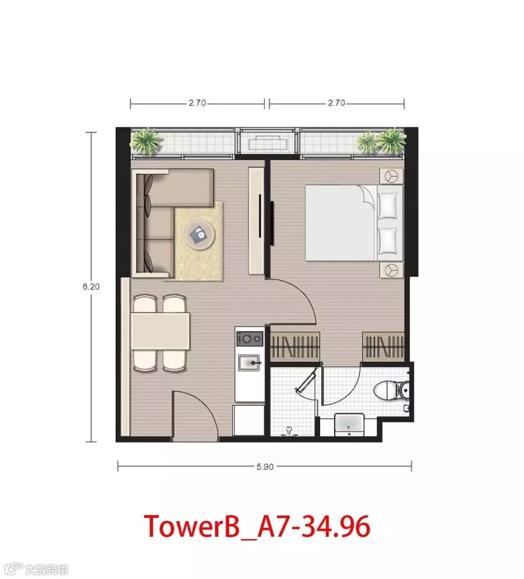 均价:16.15万泰铢起/每平米(约合3.23万人民币起)