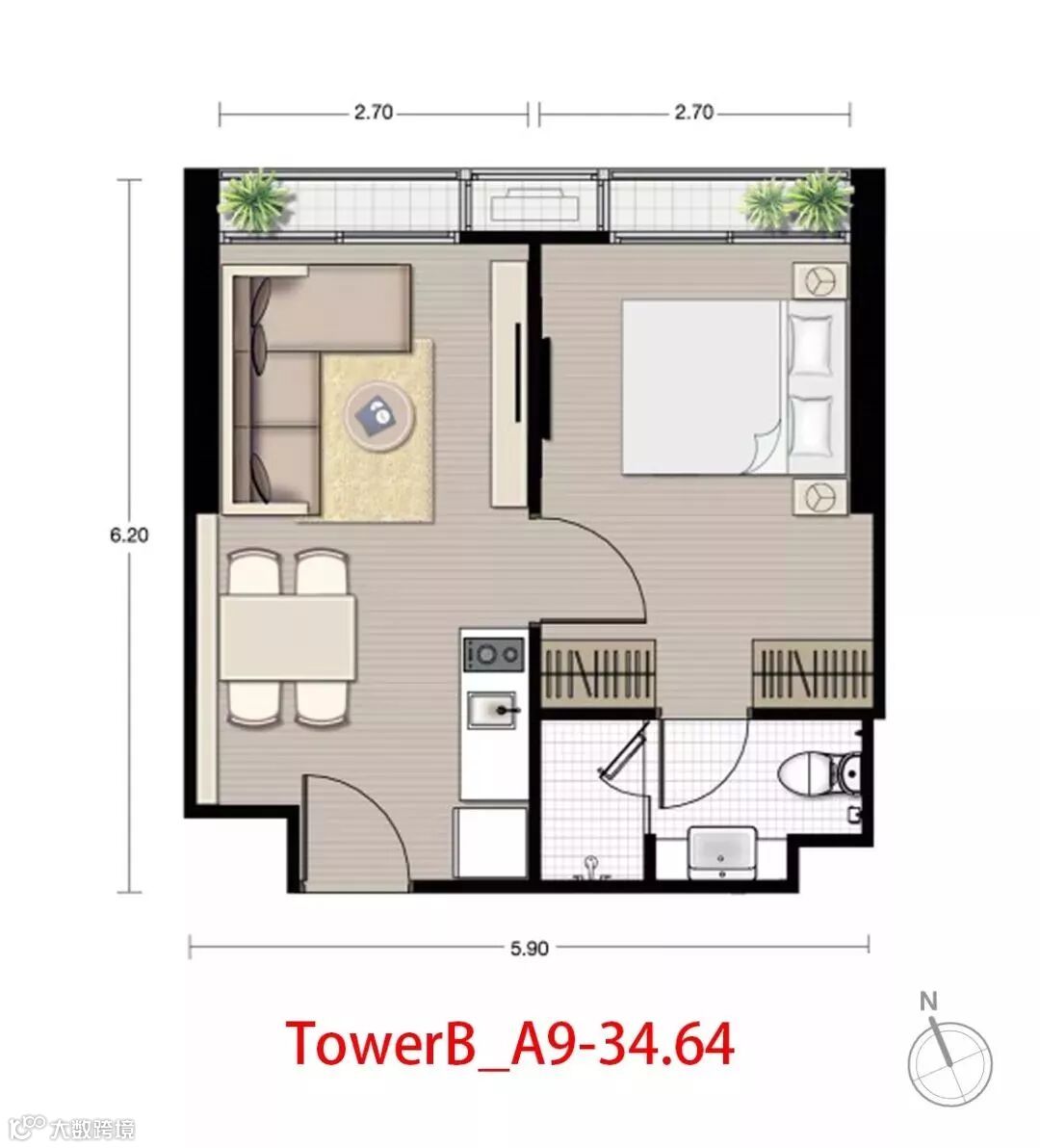 物管費:65泰铢/平米/月(约人民币13元/平米/月)