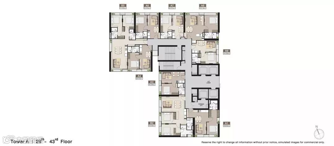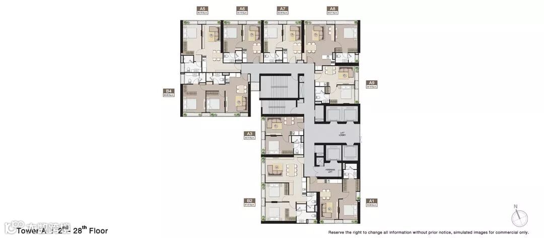 两座醒目的建筑,48层和27层的每一个房间都採用永不退流行的现代化设计。