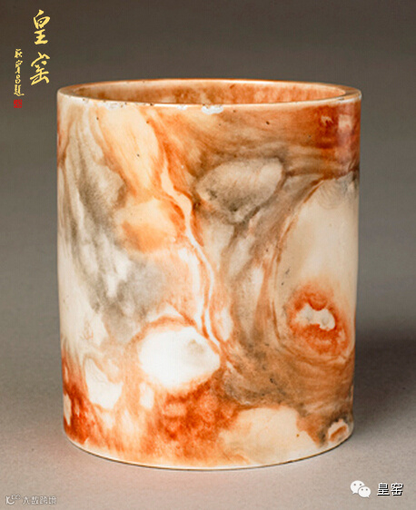 笔筒口底相若,筒形腹,圈足。里外均施仿石釉。无款识。