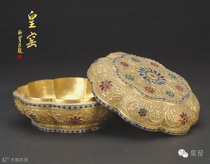 古铜彩描金花圆盒,清乾隆,通高3cm,口径6cm,足径5cm。