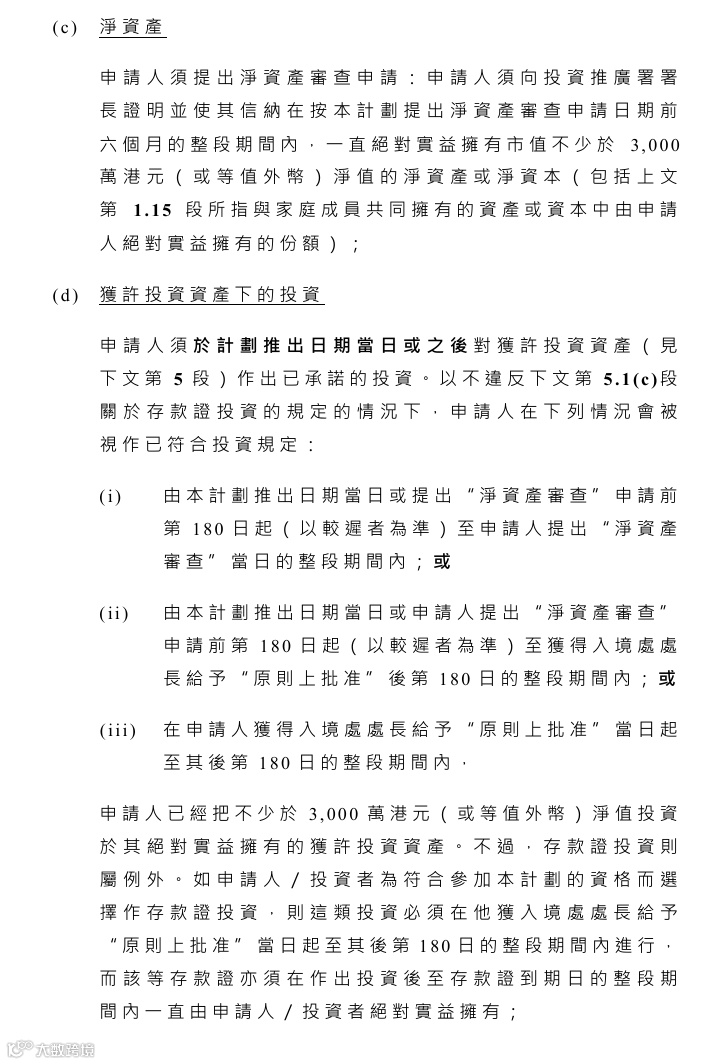 1月7日,港府正式公布了相关优化措施详情,其中将持3000万港元净资产的期限从2年大幅缩短至仅需6个月。另外,申请人与家庭成员共同拥有或由申请人全资拥有的私企投资,在计算净资产时亦获考虑。