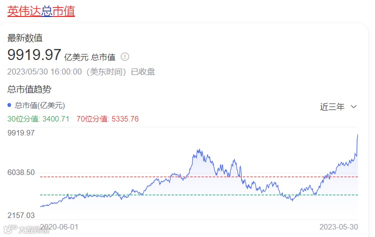 财报展望公布后英伟达市值一天之内增加1840亿美元,总市值接近1万亿美元。很明显,英伟达成了生成式AI热潮的第一批赢家。