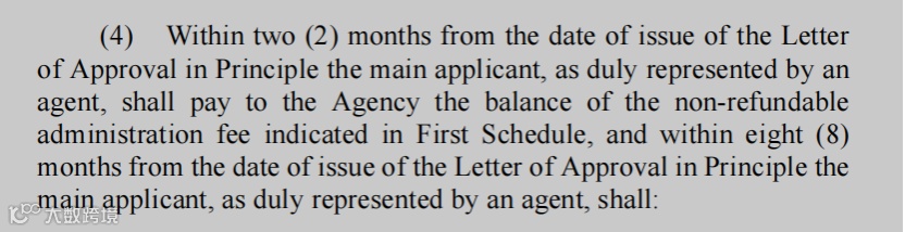 新政中,申请人获得原则性批准函后2个月内,需支付申请费尾款3万欧元,获得原则性批准函后8个月内需完成所有投资。