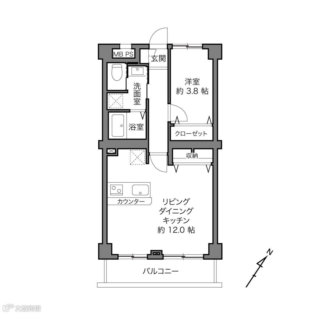 面积:1973年9月建,12层共16层,1LDK+WIC,房产面积41.38平米,阳台面积5.44平米;
