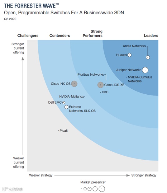 那么究竟什么样的网络产品是新时代的企业真正需要的呢?近日,由权威分析机构Forrester最新发布的《Forrester WaveTM:面向全业务SDN的开放可编程交换机,2020年第三季度》报告给出了答案。在这份报告中,华为CloudEngine数据中心交换机凭借着出色的产品实力和领先的交换性能被Forrester评为了领导者,树立了新时代数据中心网络产品的标杆。