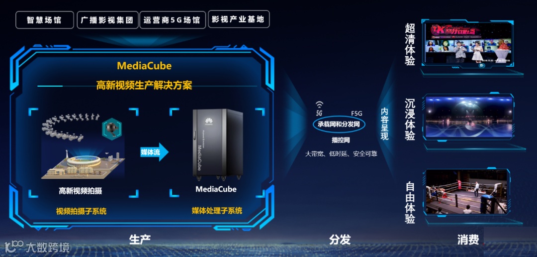为了匹配这种产业发展的趋势,华为基于长期技术的积累,推出了能够实现自由视角高效生产的标准化产品——MediaCube。