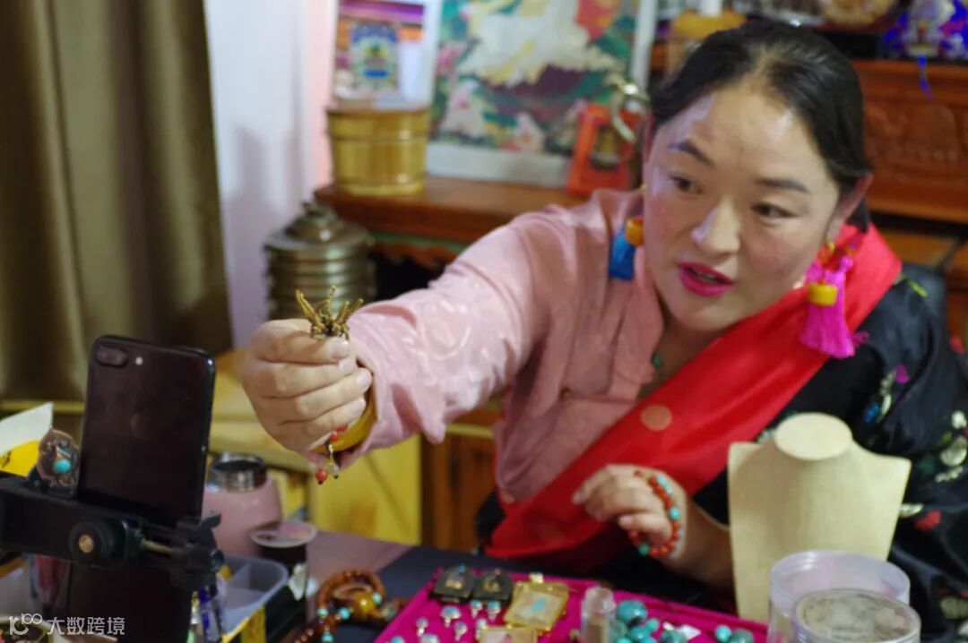 来自青海的农民主播卓玛在淘宝直播间介绍虫草是如何挖出来的