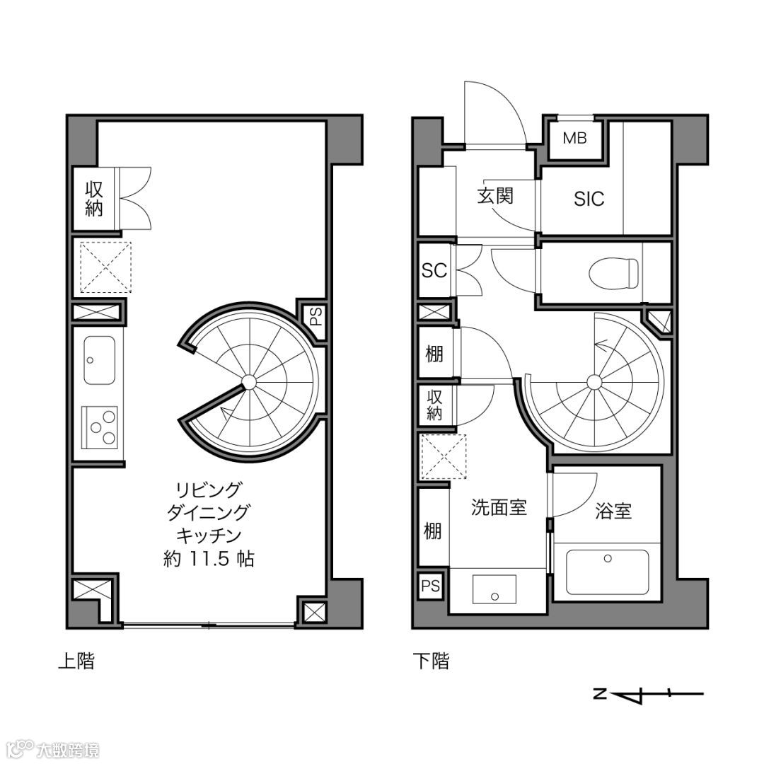 面积:2001年2月建,地上3階建て地下1階・1階部分(メゾネット),1R+WIC,房产面积42.36平米;
