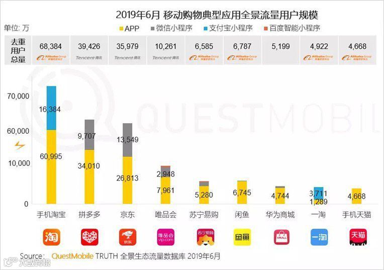 ▲小程序已经成为移动购物平台获取增量用户的重要来源,拼多多已稳居第二大电商平台,月活用户规模接近4亿。