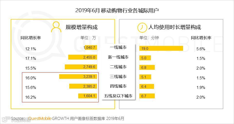 今年3月,QuestMobile曾发布第一季度下沉市场报告,拼多多以净增下沉月活用户5880万的成绩,位居电商第一。7月的这一份报告则显示,拼多多再度卫冕行业增速第一,成为618电商大战中的“获客王”。