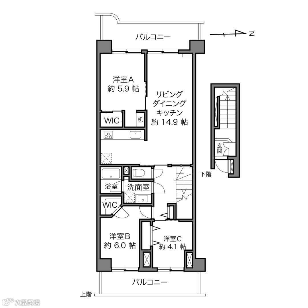 面积:1996年4月建,9、10层共14层,3LDK+2WIC+テレワークスペース,房产面积74.20平米,阳台面积17.40平米;