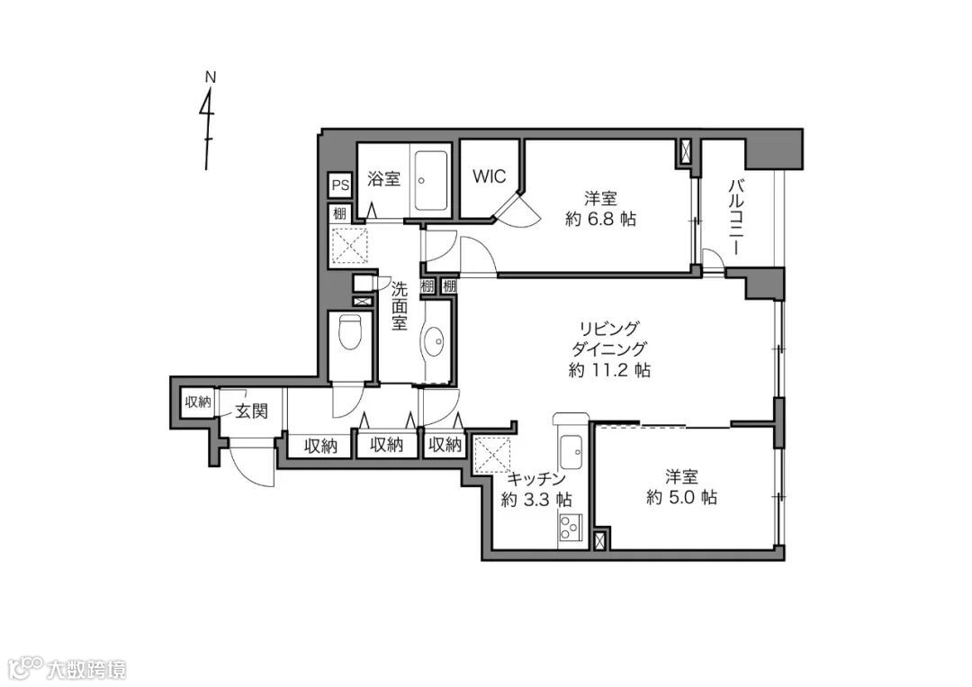 面积:1999年12月建,1层共8层,2LDK+WIC,房产面积63.55平米,阳台面积4.32平米;