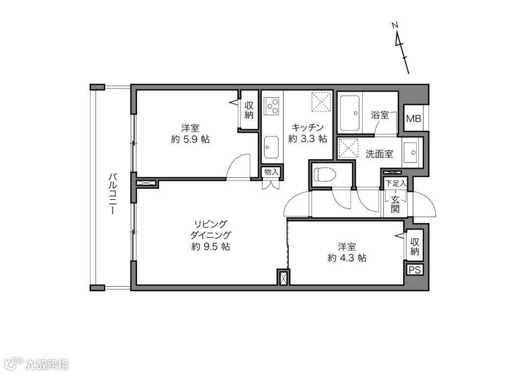 面积:2009年4月建,4层共6层,2LDK+WIC,房产面积52.05平米,阳台面积7.20平米;