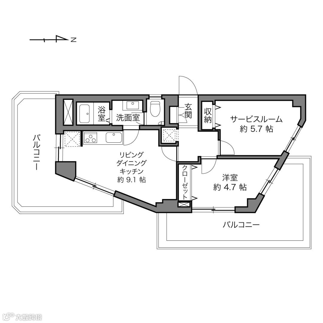 面积:1971年8月建,9层共9层,1LDK+WIC,房产面积45.30平米,阳台面积26.73平米;