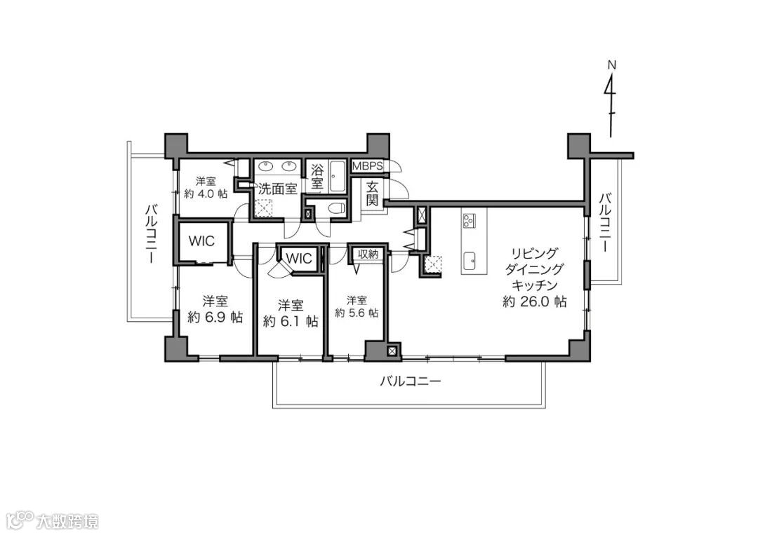 面积:1991年1月建,3层共6层,4LDK+WIC,房产面积107.52平米,阳台面积35.49平米;