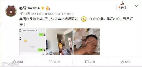 原来是身穿美团外卖制服的小姐姐给博主送外卖,发生了不可描述的事情,之后让博主“继续约她送外卖之类的”。