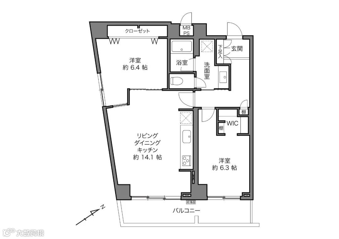 面积:1974年3月建,3层共8层,2LDK+WIC,房产面积62.96平米,阳台面积8.58平米;