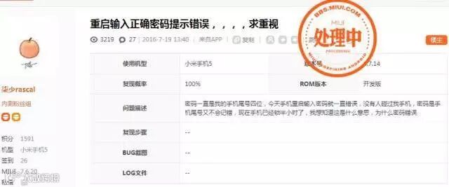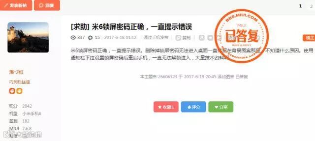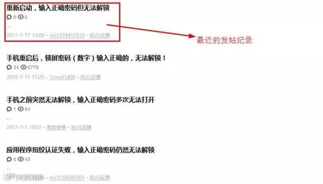 此后,他上MIUI论坛搜索,发现碰上这种“输入正确密码,提示错误,没法解锁”的系统漏洞不止他一个人,而是大有人在。