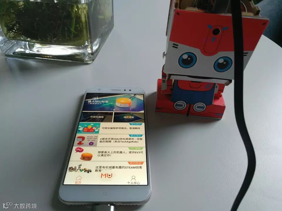 打开机器人头顶上的模板,使用产品自带的USB线,连接手机与机器人,当听到“Let’s program”时,就是进入了编程模式。
