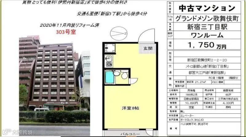 价格:1750万日币(约110万人民币);表面回报率6.5%;