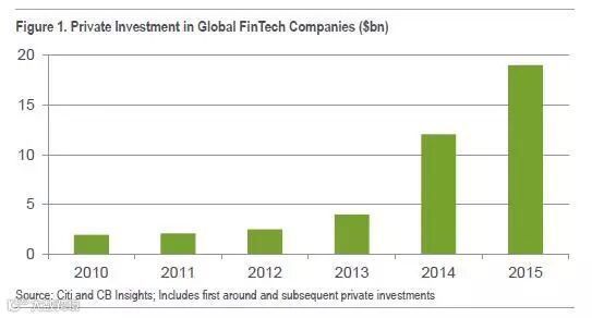 花旗在报告中援引自家和CB Insight的数据指出,从2010年到2015年,资本加速进场,全球金融科技方面的投资从2010年的18亿美元增加到2015年的190亿美元,增长了10倍多。