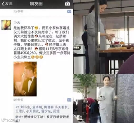 至此,从营销造势上,阿里看上去是胜了一筹。不过昨天今日京东又发起了逆袭,依靠一条消息引爆网络,即奶茶妹妹怀孕的消息。奶茶妹妹在朋友圈报喜的同时植入了京东“双十一大促”的母婴类折扣广告,引发广泛讨论与吐槽,引发病毒传播。不待阿里反应,京东又玩出了开篇所述的实名举报阿里这一招,进一步压制了阿里的气势。