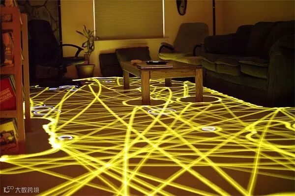 以长时间暴光摄影显示出iRobot--Roomba清洁时的行走路径。