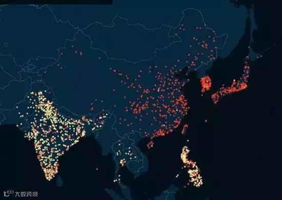 看到中国东部沿海地区密集的红点了吗!看不清?再来一张特写: