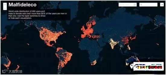 你以为中国的用户都集中在香港,内地并没有人注册这个网站?Too young!有图有真相!下面热点图是由西班牙的一家数字代理商Tecnilogica根据泄露的数据制作的一张AshleyMadison全球用户分布图,图上的红点代表了该网站在全球不同城市的用户数量: