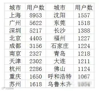 中国注册用户只占中国总人口的0.01%,但是鉴于中国人口基数总共有13.6亿那么多,额,这么一算下来,还是非常多的。而根据地图2的红点数据显示,台湾、香港的用户最多,轻松过万,内地城市中排得上号的至少还有这些: