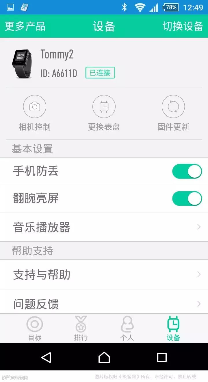 在设备界面,用户可以对小黑2进行各种功能性设置,如更换表盘、固件更新、防丢等设置。没有别的,只为让小黑2更加个性化。