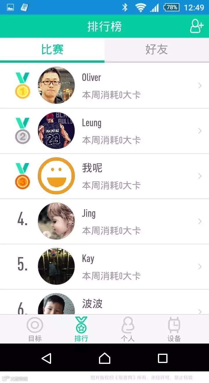 在排行界面中是小黑2用户的运动效果大PK,该界面所承载的不仅可以晒用户的运动成果,同时也承载了小黑2的社交属性。
