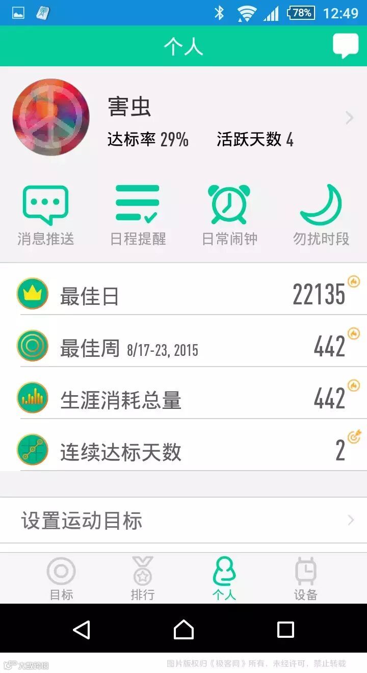 最后咱再说说小黑2的App,首屏界面是运动信息记录,当然,该界面信息通过手表界面即可轻松查看。