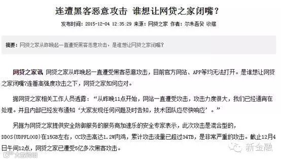 截至目前,网贷之家并未明确指出这次黑客攻击的源头,但网贷之家网站上已经有相关报道开始喊话:谁想让网贷之家闭嘴?