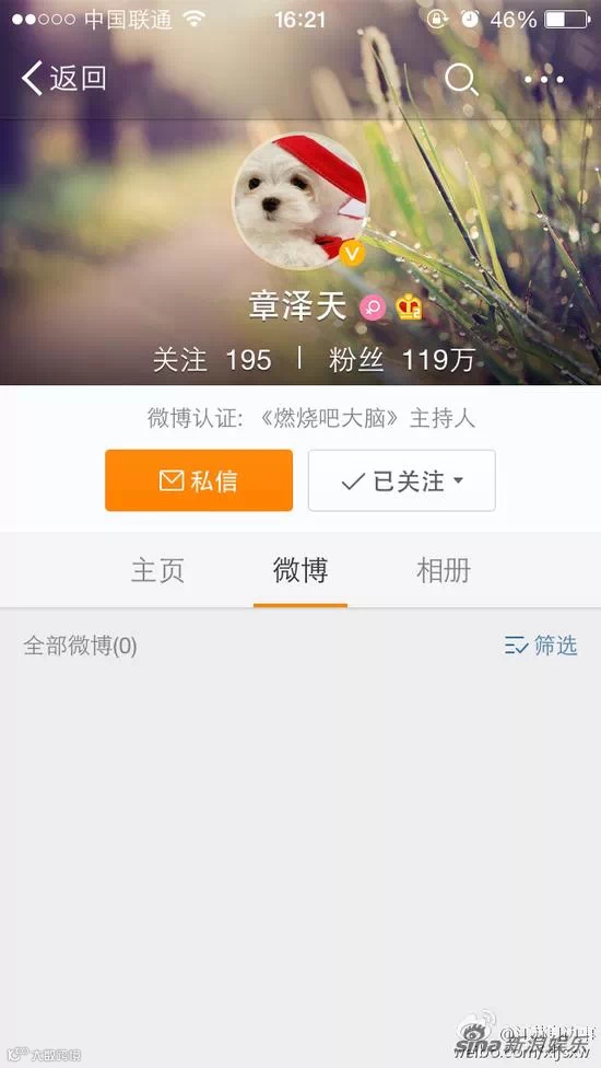 以下是章泽天的微博主页:所有微博都删除了。