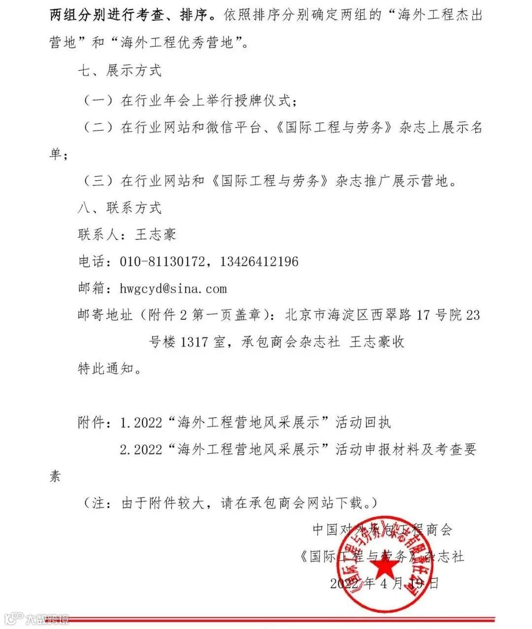 (三)在行业网站和《国际工程与劳务》杂志推广展示营地。
