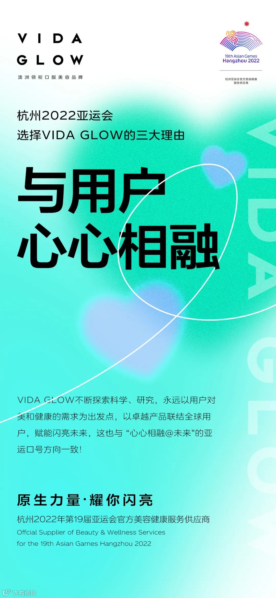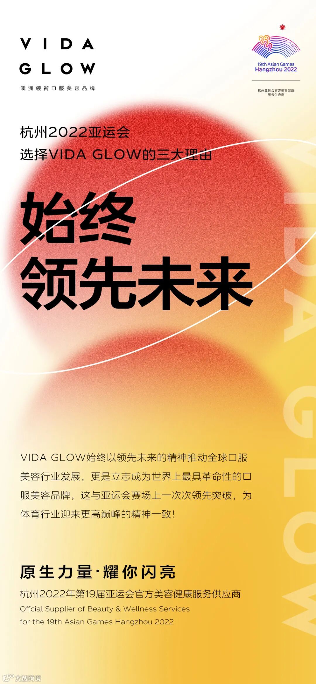 2022年2月19日,VIDA GLOW正式宣布成为杭州2022年第19届亚运会官方美容健康服务供应商。